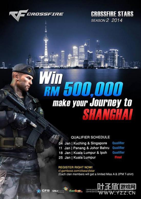 ![]() 第二季CFS即将到来,大家都准备好了吗?全球各个国家的16支顶尖队伍即将在中国上海展开角逐。现在加入CFS S2,你就离实现世界第一CF战队的梦想更进一步! 东南亚赛区的预选赛是在2014年1月4号 - 1月18号到时来自马来西亚、新加坡的42支队伍将为去往中国的最终名额厮杀,预选赛采用5v5淘汰赛制,将会在黑色城镇,港口 异域小城,沙丘,潜艇五张地图中进行。胜出的16支队伍会在2014年的1月25日前往马来西亚首都吉隆坡,参加CFS东南亚赛区的总决赛,届时会有更精彩激烈的比赛上演!最后脱颖而出的队伍会获得去往中国上海CFS S2世界总决赛的入场券,可以与世界各地顶尖的CF战队一决高下!CFer们到时候不但可以一保眼福,还能为自己支持的队伍呐喊助威。欲知CFS后事如何,敬请关注我们的后续报道喔!