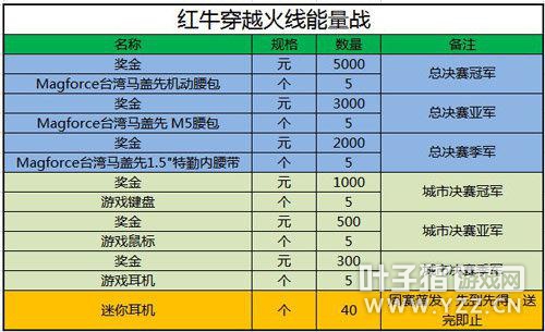无论你是刚出道的菜鸟,还是久经战场的老手,只要你有足够的自信和勇敢,有想跟各路新老高手一拼高下的决心,就快来参与“2013红牛穿越火线能量战”吧!凡是报名参赛的选手,都可获精美耳机一对哦! 你想和你的团队在这个梦想的舞台上力挫群雄吗?想将丰富的奖金奖品、道具礼包带回家吗?那就赶紧加入应战吧!
