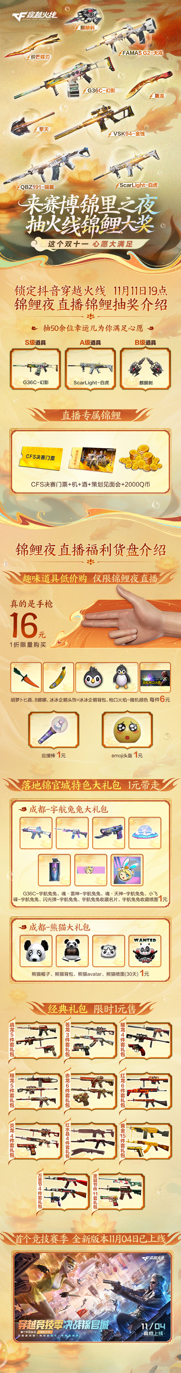 11.11锦鲤夜惊喜开启!超多道具1元秒杀,直播抽万元锦鲤大奖! |