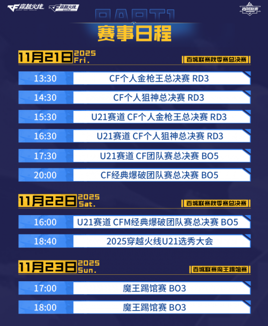历经数月的层层角逐,穿越火线全民电竞的巅峰时刻即将到来!2025CF 百城联赛秋季总决赛定于 11 月 21 日 - 23 日在苏州湾电竞馆盛大启幕。 作为《穿越火线》最具影响力的全民品牌赛事之一,本届总决赛将汇聚全国顶尖战队与选手,在枪林弹雨中争夺赛事最高荣誉,为所有 CFer 献上一场酣畅淋漓的电竞盛宴。 U21选秀大会,见证未来职业新星诞生 如果说百城联赛是草根选手的追梦起点,那么U21选秀大会便是他们叩开职业大门的关键一跃。本届赛事特邀白鲨、成都AG、EDG、eStar、KZ等10家顶级电竞俱乐部(按首字母排序)的经理及负责人亲临现场,组成"最强星探团",从U21青训营的选手池中挖掘新生代力量。这场选秀不仅是选手的"职业面试",更是CF电竞青训体系的一次集中展示。谁能从草根选手逆袭成职业选手?11月22日18:40,答案即将揭晓! 魔王踢馆赛,草根与职业的终极碰撞 若说U21选秀关乎"未来",那魔王踢馆赛便是聚焦"当下"的巅峰碰撞。本届赛事重磅邀请CFPL职业劲旅KZ与LGD空降苏州湾,与百城联赛草根战队展开两轮BO3对决,上演"职业大神VS民间猛将"的热血戏码。 百城草根战队能否凭借"主场buff"和针对性战术打破桎梏?这场踢馆赛的较量,注定充满悬念与热血。11月23日17:00,让我们一起拭目以待! 三日赛程无缝衔接,精彩不容错过 除了两大核心亮点,11月21日的CF个人金枪王、个人狙神总决赛将率先点燃赛场激情,U21赛道团队赛与CF经典爆破团队赛也将拉满赛场热度。从个人技巧的极致比拼到团队战术的默契配合,从新生代的职业起航到草根与职业的跨界对决,三天赛程层层递进,每一刻都充满看点。 11月21日-23日,锁定穿越火线官方直播间,与千万CFer一同见证新星崛起、热血逆袭,在枪林弹雨中感受全民电竞的独特魅力! |