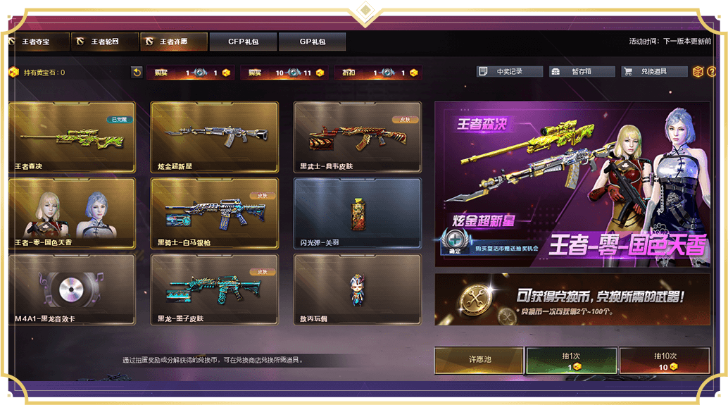 亲爱的CFer们,《新岁迷城》版本现已上线!点击下方图片,一键查看所有版本亮点,掌握最新游戏动态,让您在战场上快人一步! 迷城试炼模式 GRX的精英特工们追捕逃犯时误入了一个遍布断壁残垣的末日废都,面对其中无处不在的Blitz机械军团,一场交织抓捕与探秘的生死任务就此展开! 一篇带你了解迷城试炼模式怎么玩!穿越火线全新肉鸽玩法迷城试炼模式已上线!想快速get核心信息,速来了解详情~ 地图工坊重磅更新 本次全新版本地图工坊迎来重磅升级,匠心工坊新增超多实用功能: 新增武器buff类节点,可以自由调整武器的多种属性。 新增猎手专属武器,可以在匠心工坊中使用猎手专属武器。 新增多种人物角色属性调整,包括跳跃速度,跳跃高度,蹲下时的移动速度等多种属性调整。 新增Attach类节点,可以将Actor绑定到角色身上,随角色移动。 基于以上更新,新版本地图工坊新增了了生化推车、黑色城镇-全明星之战、生化越狱等全新创意地图。 开年重磅大礼 新年首波福利直接王炸!全新「序章系列」武器强势来袭,核心款魂·QBZ03·金色蔷薇-序章以鎏金纹路搭配新年红点缀,颜值与性能双在线,更有生化属性角色限时派送,佣兵觉醒:无需装弹、生存本能、狩猎本能三大属性保驾护航; 首推超重磅年度盲盒,权益加码升级,内含隐藏福利,开盒即有惊喜。 CFS模式新增十胜规则 新版本CFS模式在原有的裸装爆破、1比1复刻CFS规则的基础上新增了十先胜制:正常情况下,双方抢先获得10分者获胜。在原基础上,9比9时将触发加时赛,抢先获得13分者胜,当12比12时触发黄金加时赛,一局决胜负! 竞技体验优化 本次更新后系统与游戏内的细节迎来打磨优化,AK47-竞魂无影、M4A1-雷神、M4A1-黑龙等近百款VVIP武器均可在个人仓库设置关闭近战功能。 同时为潜艇地图中的箱子内部增加了视线无法穿过的遮挡处理,现在将无法通过特殊操作进入箱子后“透视”地图情况。 交易所更新 交易所大厅优化,同时版本更新后交易所第7轮道具上新,新增冰雪主题巴雷特、COP、柯尔特、近战武器以及角色潘多拉,通过交易兑换所兑换获得。 王者抽奖奖池更新 纸灯龙系列龙啸,幻神,金色蔷薇,王者白虎,王者森决上架幸运抽奖。 系统与游戏内优化 为方便玩家快速找到设置选项,本次更新在“选项-设置”面板增加“搜索”功能,CFer可通过搜索快速到达选项位置。 本次更新后,调色背包道具无需装备,只要个人仓库拥有,即可通过设置按钮使用“更改昵称颜色&更改聊天颜色”。 另外还优化了第三人称起身动作,调整了男女角色从蹲下到站起的动画时长,减少了动作违和感,视觉上更加顺畅自然。 (男性角色) (女性角色) 探险模式快捷键变更 新版本探险模式游戏内按键绑定修改:地图移动快捷键(K→O)。 全新版本《新岁迷城》现已正式上线,全新肉鸽玩法迷城试练重磅登场,等待CFer上线体验!为保障CFer游戏体验,新版本不少细节与系统都针对性进行了优化,本次更新还为CFer准备了开年重磅大礼,千万不要错过! |