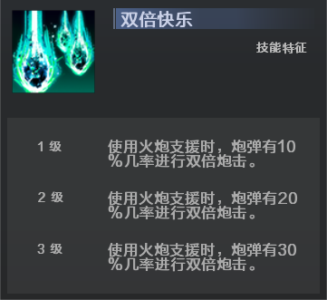 然后再选择“请求炮击支援”特征,为主技能添加双倍炮击、自动瞄准等机制,强度更上一层楼。