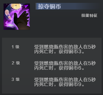 最后再选择“燃烧瓶”特征,不过如果提前刷到“掠夺铜币”特征也可直接拿下,在前期可以多出一大笔经济超前发育。