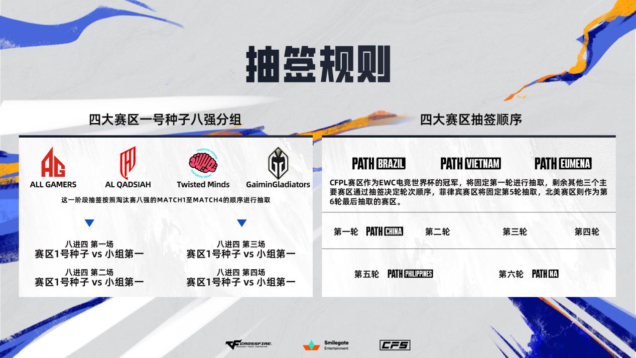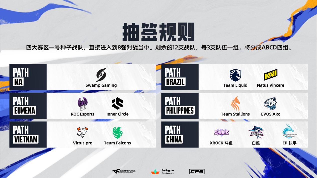 | 2025CFS中国区预选赛圆满落幕。最终,成都AG、XROCK.斗鱼、白鲨和EP.快手,四支队伍将代表CFPL赛区参加2025CFS世界总决赛。就在刚刚,2025CFS世界总决赛小组分组抽签及淘汰赛八强对阵结果正式出炉,一起来了解下。 本次抽签规则较往届CFS世界总决赛有着巨大变动,四大赛区(CFPL、CFBL、CFVL、CFWL)一号种子将直接锁定八强名额!剩余的十二支战队将分为A、B、C、D四组进行小组赛的捉对厮杀! 小组赛抽签结果如下: A组:白鲨、Team Stallions、Swamp Gaming B组:XROCK.斗鱼、Team Liquid、Team Falcons C组:ROC Esports、Virtus.pro、EVOS ARc D组:EP.快手、Inner Circle、Natus Vincere 淘汰赛八强对阵: Twisted Minds vs A组第一、AL QADSIAH vs D组第一、Gaimin Gladiators vs C组第一、成都AG vs B组第一 。 从分组结果看,EP.快手可以说是上上签,同组对手Inner Circle、Natus Vincere从EWC电竞世界杯的表现来看,并不是很强,只要稳定发挥,晋级希望很大。 XROCK.斗鱼将面对Goken领衔的Team Liquid和以2024CFSSC冠军阵容为班底的Team Falcons。对于以年轻选手为主,队史第二次参加CFS世界总决赛的XROCK.斗鱼来说,小组赛就要面对强劲对手。如果能够以小组第一晋级,他们也将在八强赛中遭遇老对手成都AG,因此今年CFS世界总决赛,对于XROCK.斗鱼来说,又是一次极大的考验。 CFPL赛区另外一支队伍白鲨,小组赛最大的对手是来自菲律宾的Team Stallions。这支队伍在近两年的成长非常迅速,在2025英雄亚冠ACL和2025EWC电竞世界杯的比赛中,Team Stallions都跻身到了四强行列,这群年轻的选手,将是今年CFS,CFPL赛区夺冠道路上最大的拦路虎。 对于成都AG来说,由于他们获得了CFPL赛区1号种子,因此在2025CFS世界总决赛中,他们直接晋级到八强。同时他们获得了更多准备的时间。 |
