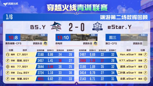 2025穿越火线青训联赛端游比赛,BS.Y 2:0力克eStar.Y。 本场比赛地图 Ban:卫星基地-竞技荣耀、新鹰眼-CFPL十周年、潜艇-CFS、新沙丘、新姑苏城、异域小城-世界冠军Q9 Pick:黑色城镇-CFS、供电所、港口-CFS 本场比赛赛果 第一图:黑色城镇-CFS(BS.Y 10:8 eStar.Y) 第二图:供电所(BS.Y 13:10 eStar.Y) 恭喜BS.Y获得本场比赛胜利! |