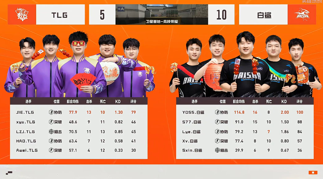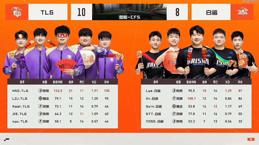 2月3日,CFPLS27赛季常规赛第四周的比赛开启争夺。在这一比赛日率先进行的两场对决中,白鲨在先丢一局的情况下稳住局面,以2-1的比分险胜TLG。下面让我们一起来回顾一下这场精彩的比赛! 第一局潜艇-CFS,577配合YDSS回防B区得分,LZJ双向门连续抽人,Lye黑屋狙击双杀,白鲨后点防守接连得分,半场6-3领先。换边之后,HAO突然找到手感,回防A区完成1V2残局,防守B区多次刷屏,TLG连得6分来到局点,白鲨强攻A区接连追分,但残局突破A区失败,TLG以10-8的比分赢下第一局,总比分1-0领先,HAO获得本局MVP。 第二局卫星基地-竞技荣耀,577回防A连接双杀,TLG强攻A区收下残局。J1E突破A包点双杀,YDSS单局三杀,白鲨防守B区得分,半场6-3领先。换边之后,白鲨针对B区展开进攻,Awei枪法失误,白鲨佯攻B区得手,以10-5的比分赢下第二局,总比分1-1平,YDSS获得本局MVP。 决胜局黑色城镇-CFS,J1E反绕B仓残局1V4失败,TLG夹击A区打成。TLG进攻突然脱节,Awei突破A小道枪法失误,Lye四杀刷屏,白鲨连得6分,半场取得7-2的巨大领先。换边之后,HAO回防B仓双杀,TLG赌防B区得分,一度迫近比分。关键分白鲨夹击A区,577单局三杀,白鲨以10-5的比分赢下决胜局,总比分2-1战胜TLG,577获得本局MVP。 【明日赛程】 明日晚19点整,CFPLS27赛季常规赛继续进行,对阵为KZ VS XROCK.斗鱼、成都AG VS EP.快手,让我们共同期待这两场精彩的对决! |