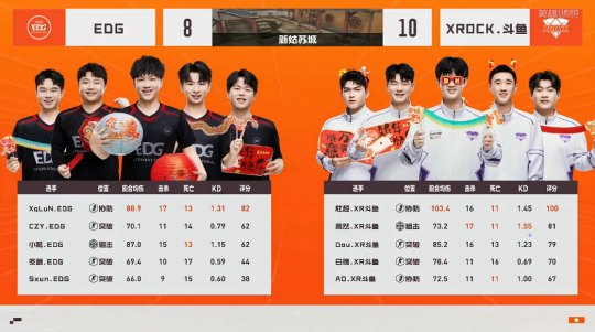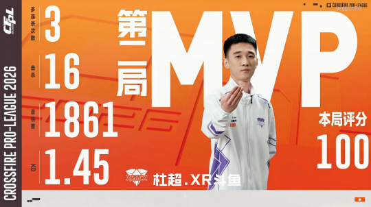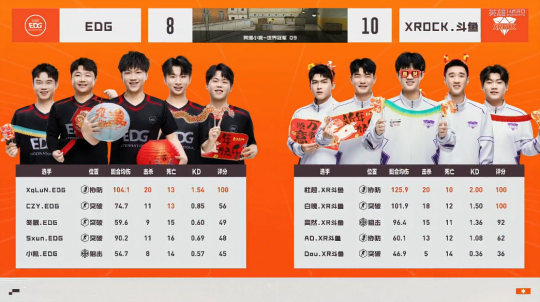2月8日,CFPLS27赛季常规赛第四周的比赛落下帷幕。在最后的两场比赛中,XROCK.斗鱼打满常规时间所有局分,凭借杜超的出色发挥,以2-0的比分险胜EDG。下面让我们一起来回顾一下这场精彩的比赛! 第一局异域小城-世界冠军Q9,EDG开局快速前顶中路,AD、高然狙击连续抽人。EDG进攻A区,XqLuN单局三杀,AD前顶中路走位失误,EDG强攻A区打成,半场比分反超为5-4。换边之后,杜超突破A区接连双杀,CZY回防收下残局,双方一度战至9-8,关键分白魄突破B连接双杀,XROCK.斗鱼各个击破,以10-8的比分战胜EDG,杜超获得本局MVP。 第二局新姑苏城,XROCK.斗鱼配合道具突破中门得分,杜超、AD完成2V2残局,EDG赌防A区得分,XROCK.斗鱼反清B区击杀冬眠,半场6-3领先。换边之后,比赛风云突变,XqLuN带队突破中门,EDG强攻A区轻松打成,一度将比分追至8-9。EDG进攻B区战术脱节,杜超关键双杀,XROCK.斗鱼以10-8的比分赢下第二局,总比分2-0战胜EDG,杜超获得本局MVP。 【下期赛程】 接下来CFPLS27赛季常规赛将进入到一段春节休赛期,2月27日,全新一周的比赛即将开启,对阵为LGD VS TLG、成都AG VS 白鲨,让我们共同期待后续更加精彩的CFPL赛事! |