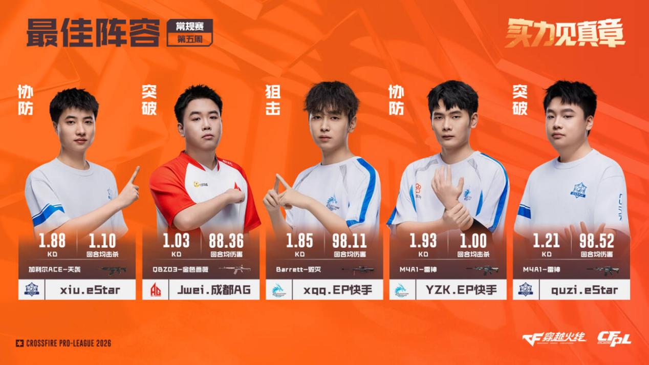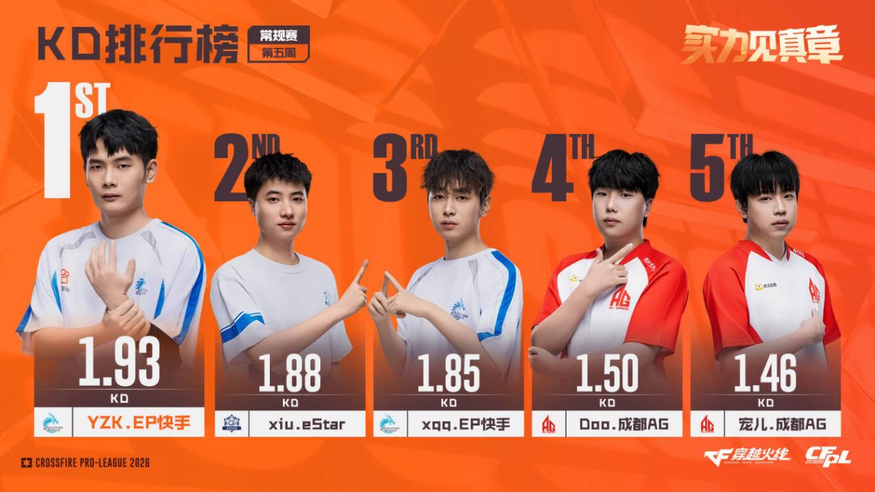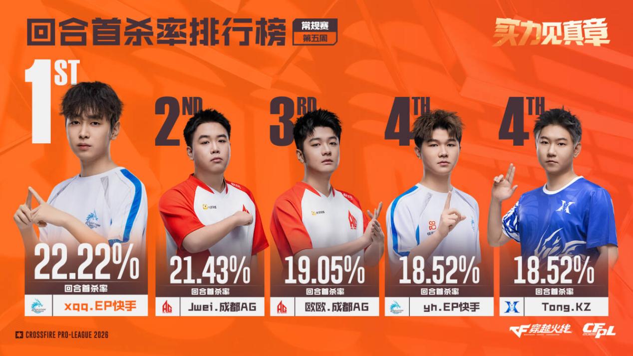 CFPL S27常规赛第五周战罢,尽管上周仅进行了三个比赛日,但各队选手依旧火力全开,贡献了多项亮眼表现。接下来,让我们通过数据回顾,看看哪些选手在上周比赛中大放异彩。 【xiu荣膺最佳选手,eStar双星领衔最佳阵容】 上周比赛中,年轻战队eStar延续强势表现,轻松战胜LGD,胜率重回五成。队内核心老将xiu状态爆棚,交出了101.69回合均伤害和1.1回合均击杀的华丽数据,两项数据均位列联盟第一,KD高达1.88,多次在比赛中上演精彩连杀,荣膺上周最佳选手实至名归。 eStar双子星xiu与quzi携手入选最佳阵容,其余三位入选者分别为Jwei、xqq与YZK。其中,Jwei在突破位贡献88.36的回合均伤害,助力队伍双杀白鲨;xqq与YZK则展现了顶级架点狙击的默契配合,帮助队伍稳稳战胜KZ。 【KD榜强队分庭抗礼,年轻突破输出拉满】 KD榜前五名选手数据均在1.4以上,Doo与宠儿组成的残局双核依旧稳健,而EP.快手的狙击双核YZK与xqq更是表现惊艳,两人KD均突破1.8,曾助力队伍打出10比0的完美开局,展现极强统治力。 回合均伤害方面,前五名选手均突破95大关。年轻突破手quzi与yh表现尤为亮眼,quzi本赛季进步神速,以98.52的回合均伤害频频打出顶级突破表现,yh则以稳健的输出和关键刷屏,为EP.快手的多狙击体系注入更多火力支持。 【雨寞化身悲情英雄,成都AG双突破状态在线】 TLG虽双赛但拿下两连胜,总击杀榜上有四名选手上榜。唯一非TLG选手为Q9核心狙击雨寞,他在对阵XROCK.斗鱼的比赛中单场斩获47杀,狙击压制力十足,可惜队伍鏖战三局惜败,47杀遗憾成为“空砍”。 回合首杀率榜单则被四强队伍EP.快手、成都AG与KZ选手包揽。成都AG双突破Jwei与欧欧以接近20%的首杀率双双上榜,为这支擅长残局的队伍增添了更多战术主动权。随着常规赛过半,他们在冲击常规赛冠军的路上也愈发显得势不可挡。 以上就是CFPL S27常规赛第五周的数据盘点。经过短暂休整,第六周的战火即将重燃,各队选手又将带来怎样的精彩表现?让我们拭目以待! |