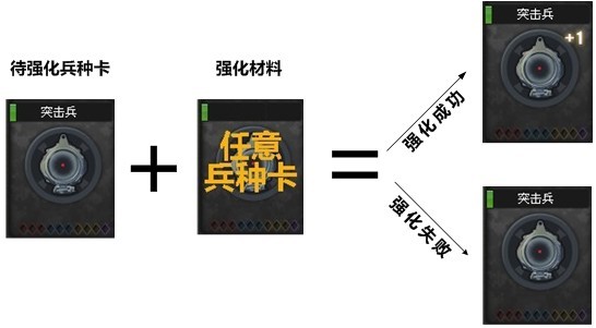 ![]() 2.当你发现选择兵种卡的时候,有几张相同的卡片,不要认为这是系统错误,你可以把多余的兵种卡拿来合成。合成后会对兵种的属性进行提升。
